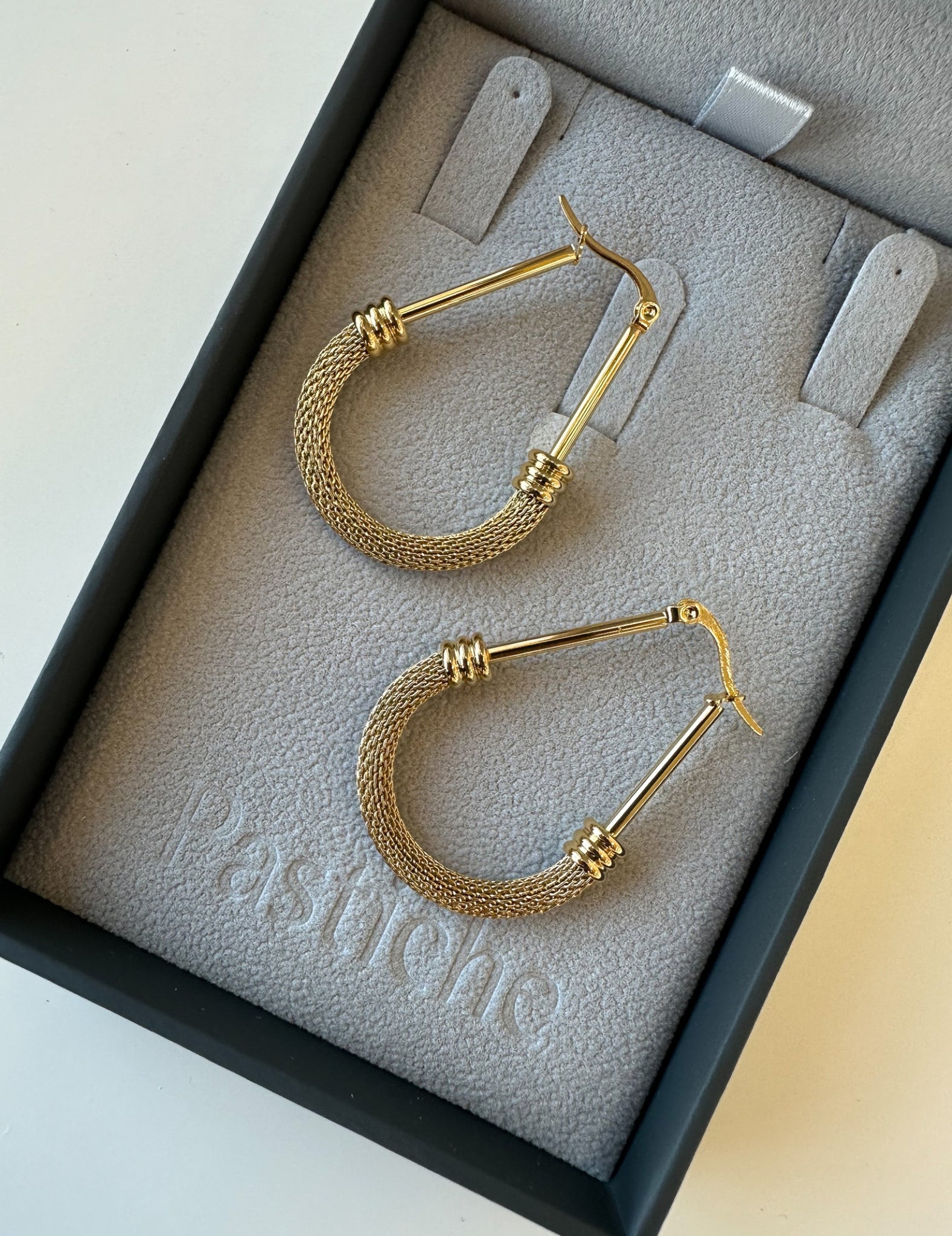 Crafted from durable stainless steel, the Aleena Earrings are both chic and resilient. Their unique half-mesh design brings a modern flair to any outfit, whether you're dressing up for a night out or adding a trendy edge to your daily look.