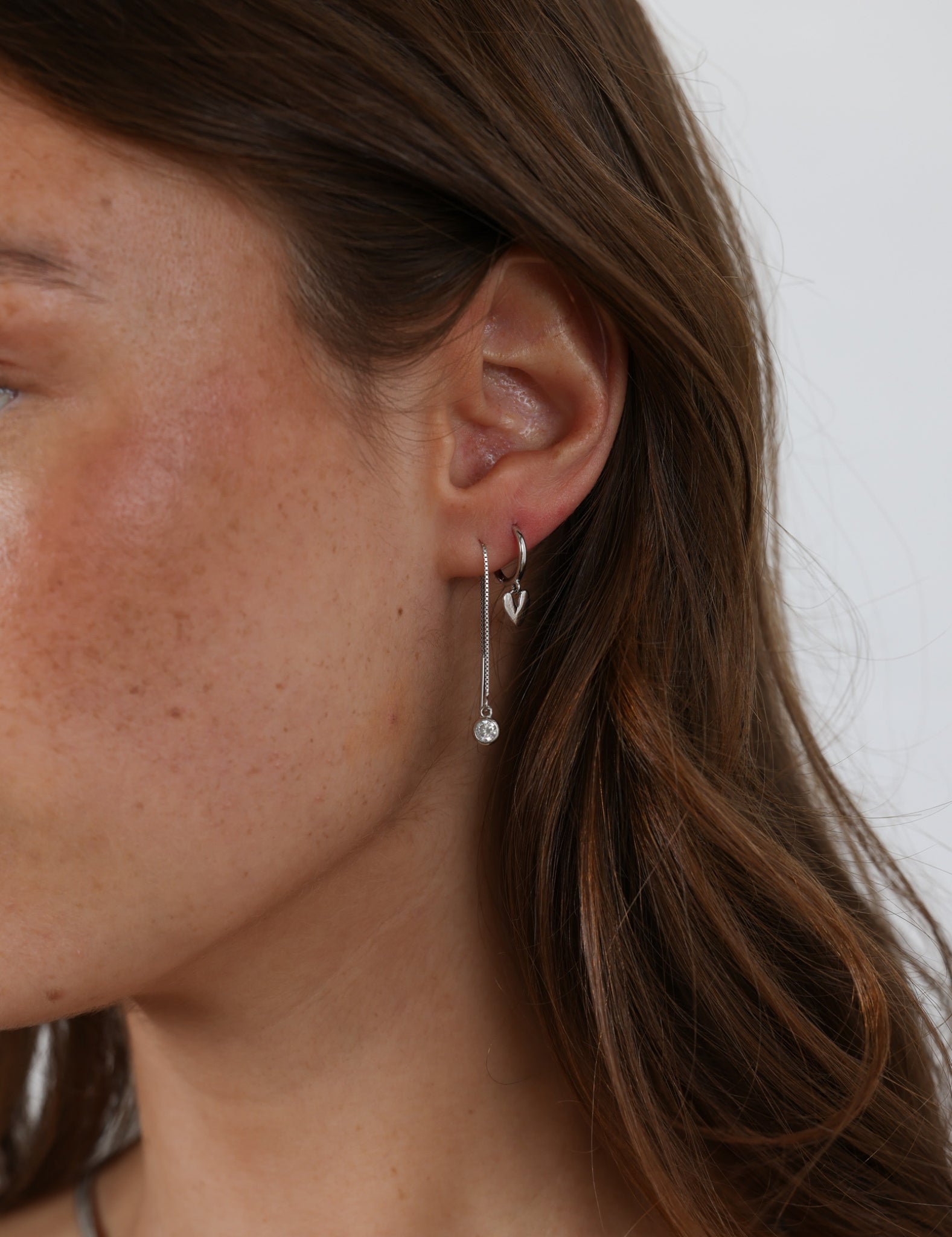 Care should be taken with our French hook (called 'hook'), ear thread and v-wires earrings range as they have no back stopper, and can push forward out of the ear when worn with certain hairstyles, scarves or jumpers.
