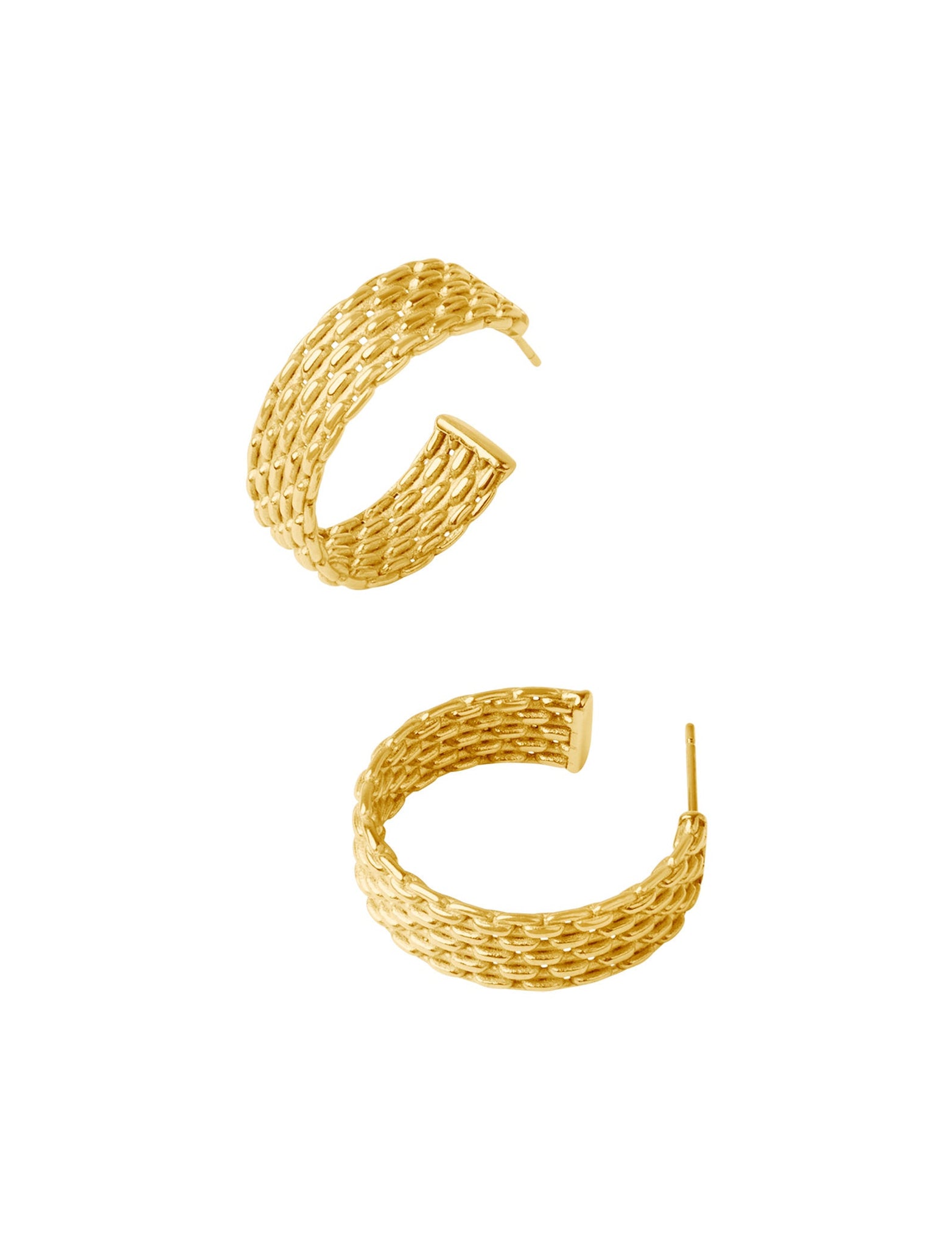 This chunky set exhibits versatility in your wardrobe, equally suitable for a casual day out or a formal gala Together with a matching bracelet, the Woven Hoops acccentures a tastefully curated ensemble..