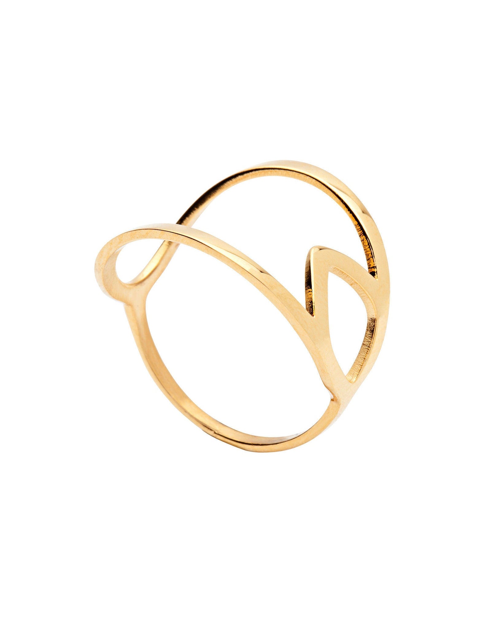• The ring transitions from a slender 1.2mm band into a wide, 15.5mm open-face focal point