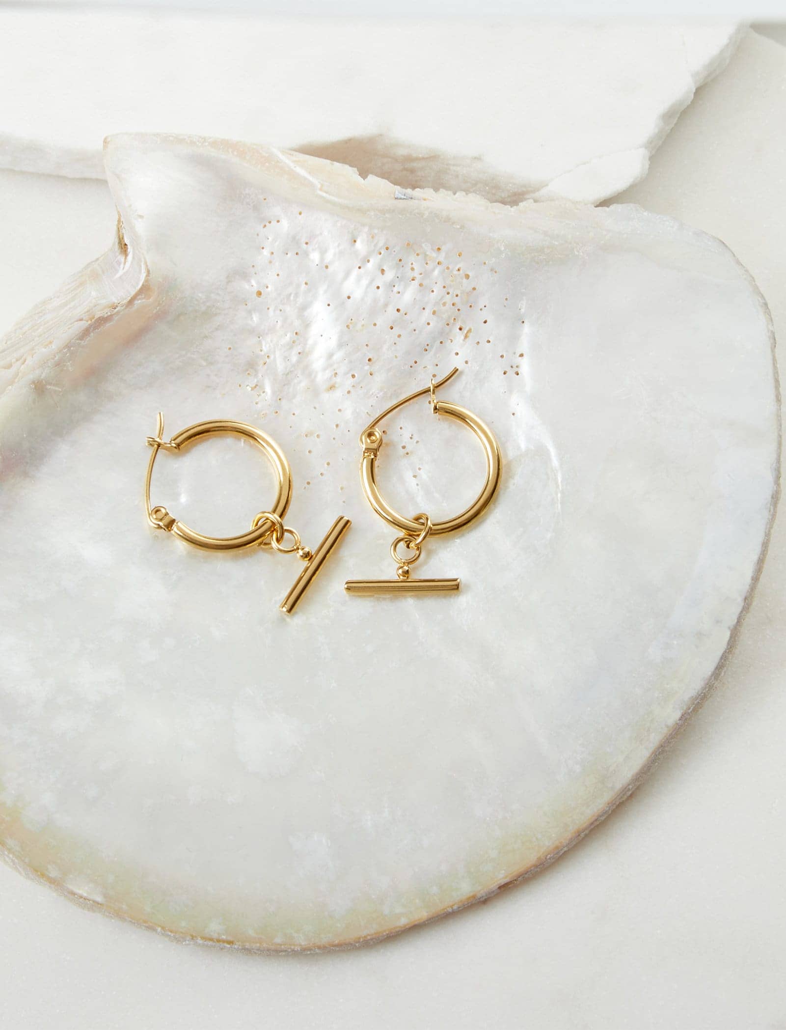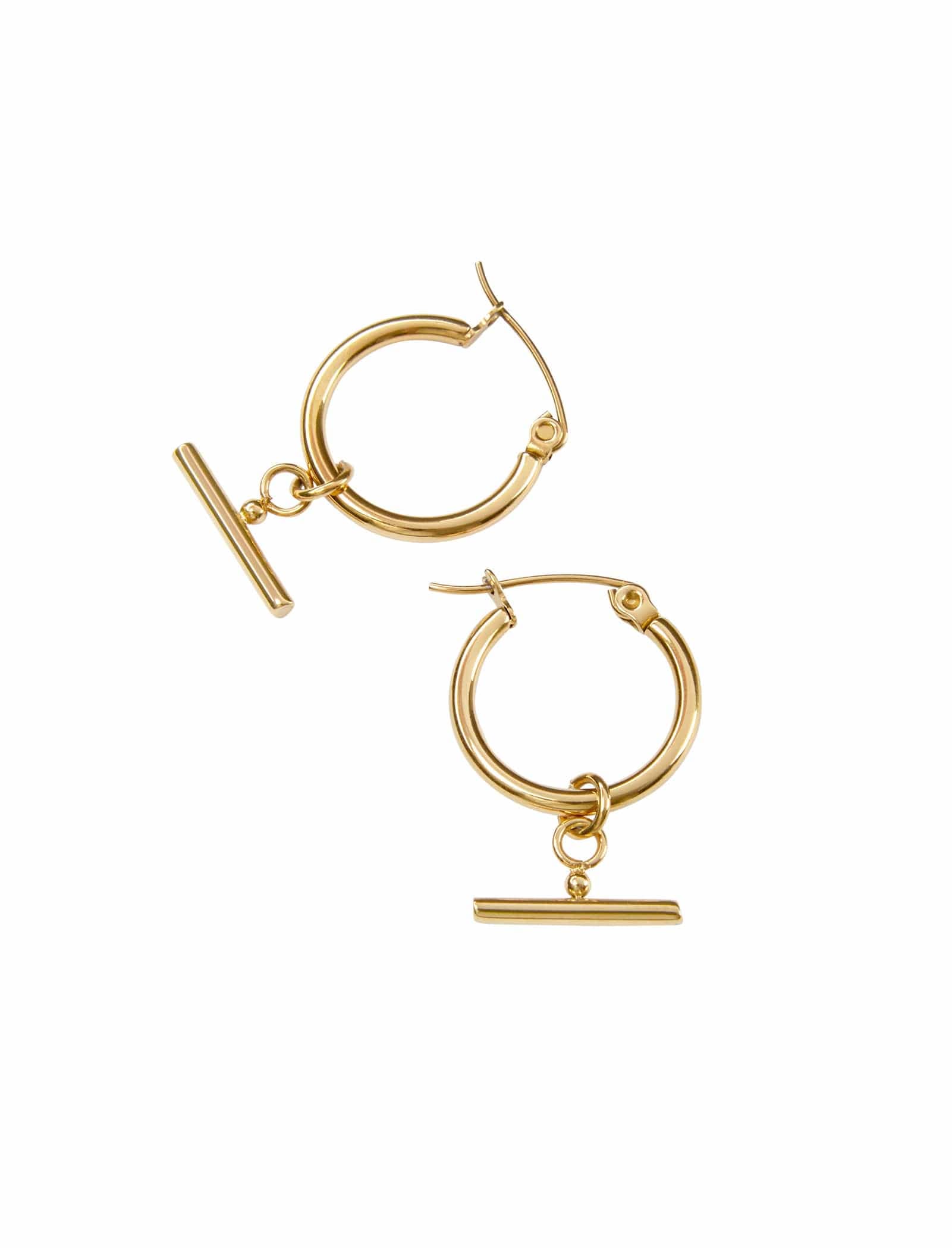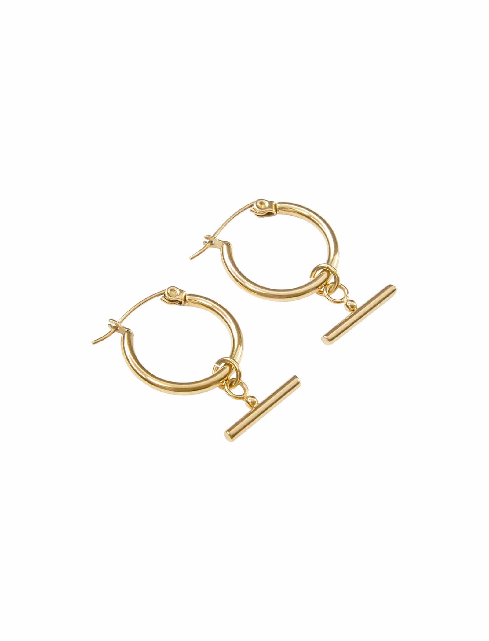 Step out in style with the Alida Earrings Adding a statement feature to simple hoop exquisiteness, these earrings showcase an eye-catching fob bar for a touch of unique elegance.