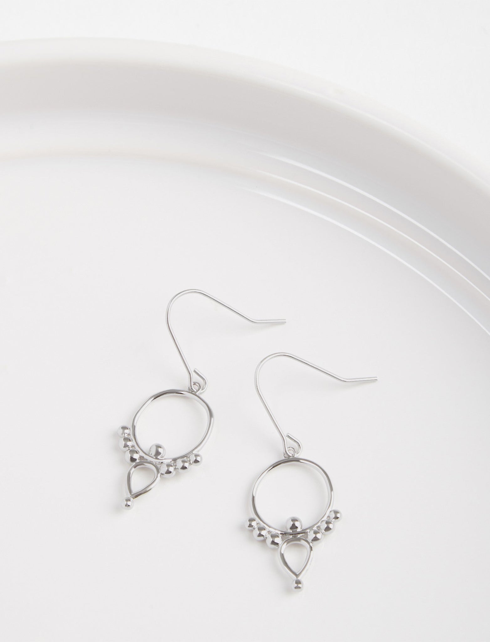 Bind your look together with the fine lines and ball details of this beautiful piece Featuring an open circle design, an alluring teardrop on top, and decorated with ball features, it captures the light akin to a constellation of sparkle.