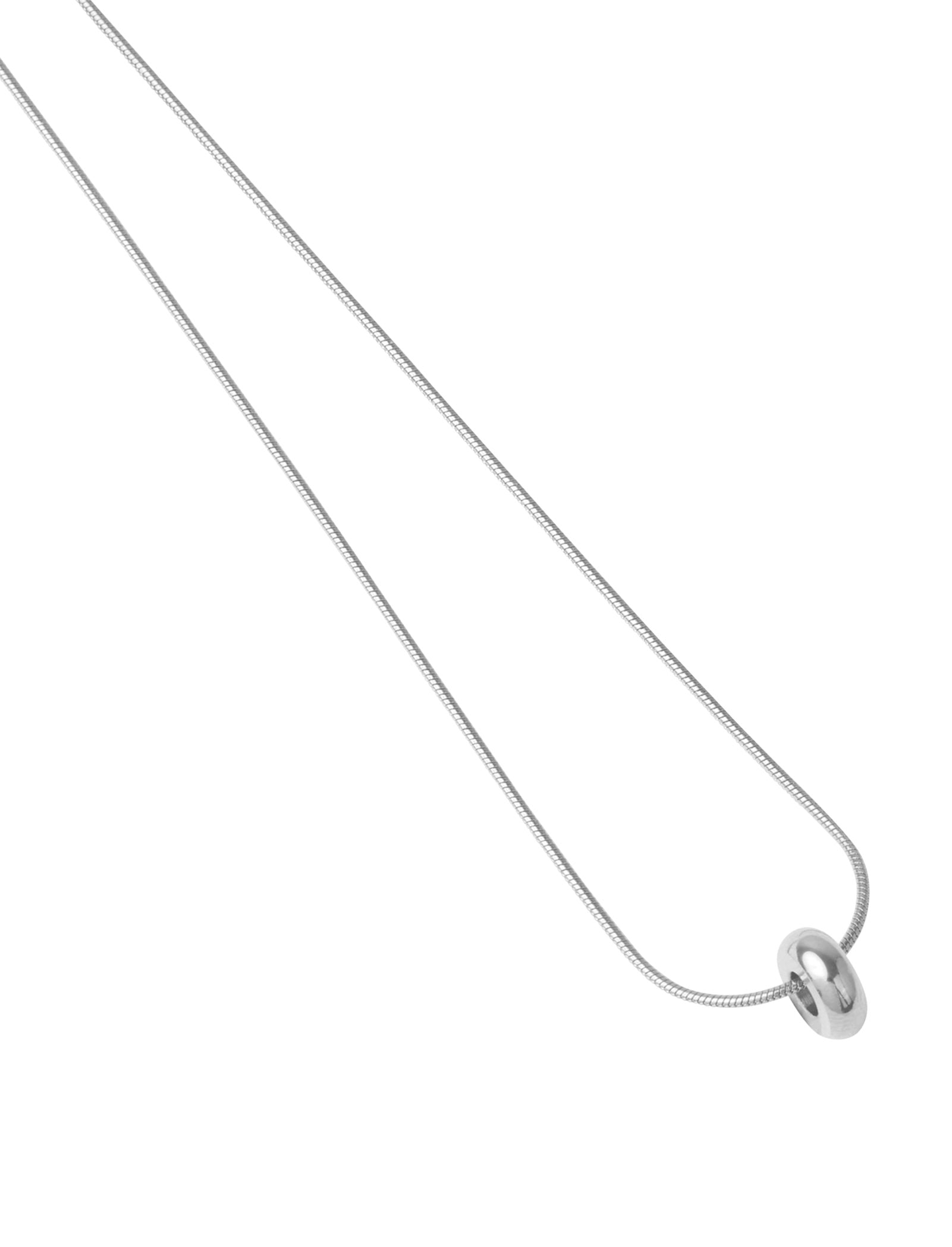 The classy Eternity Necklace boasts a 7.9mm diameter pendant that elegantly hangs on a 42cm chain with an additional 6.5cm extension, placing the pendant beautifully at the center of the chest. Meticulously crafted in stainless steel, the necklace embodies a shimmering polish catering to a timeless allure. The unique snake style chain with its minimalist ring pendant renders a modern yet sophisticated aesthetic. Available in silver, rose gold, and yellow gold, offering varied choices to suit your style preferences.