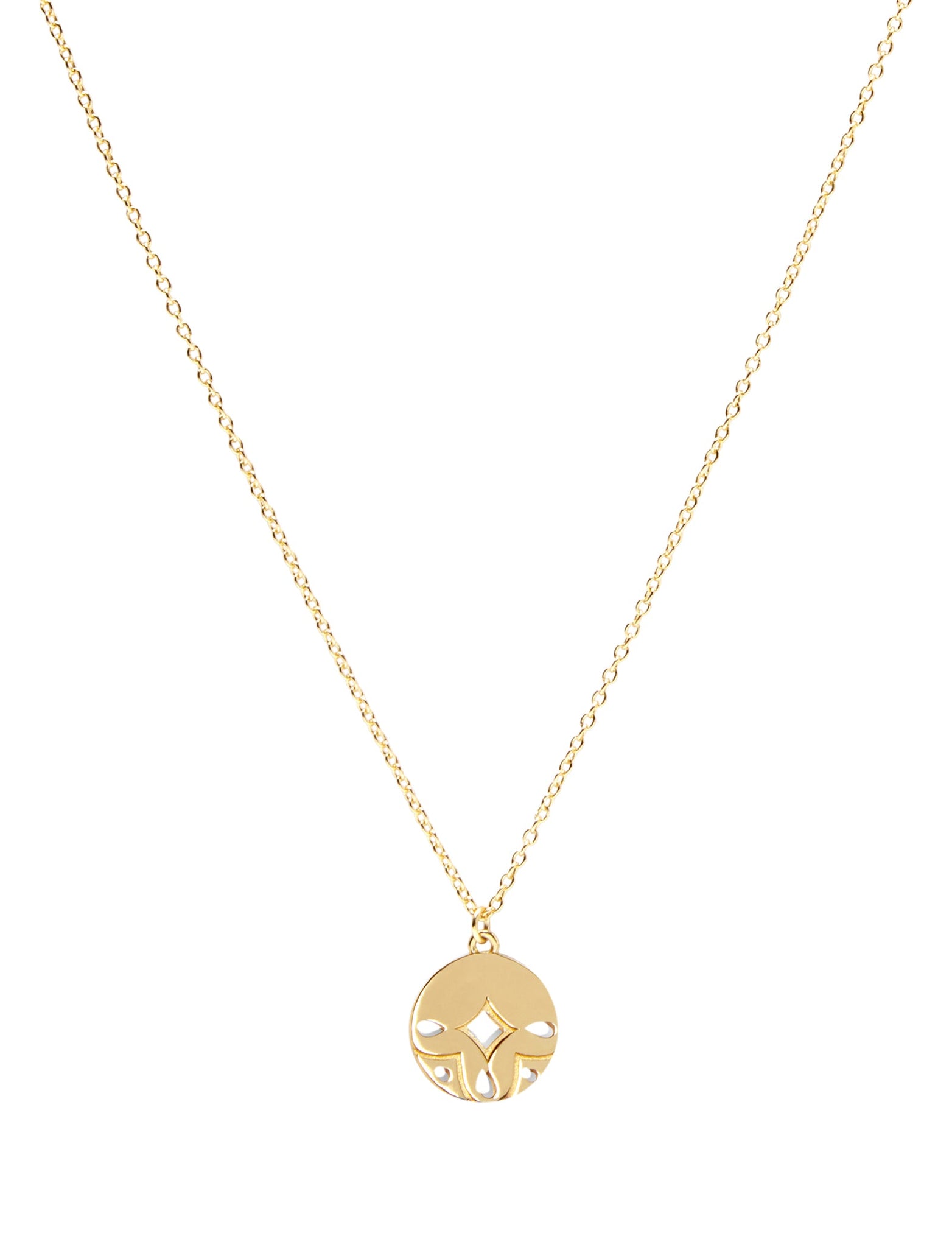 With its unique silhouette, it stands as a beacon of simplicity and modern elegance in your jewellery collection This necklace features a fine, lightweight chain and a disc pendant with a distinctive cut-out design, adding a touch of sophistication.