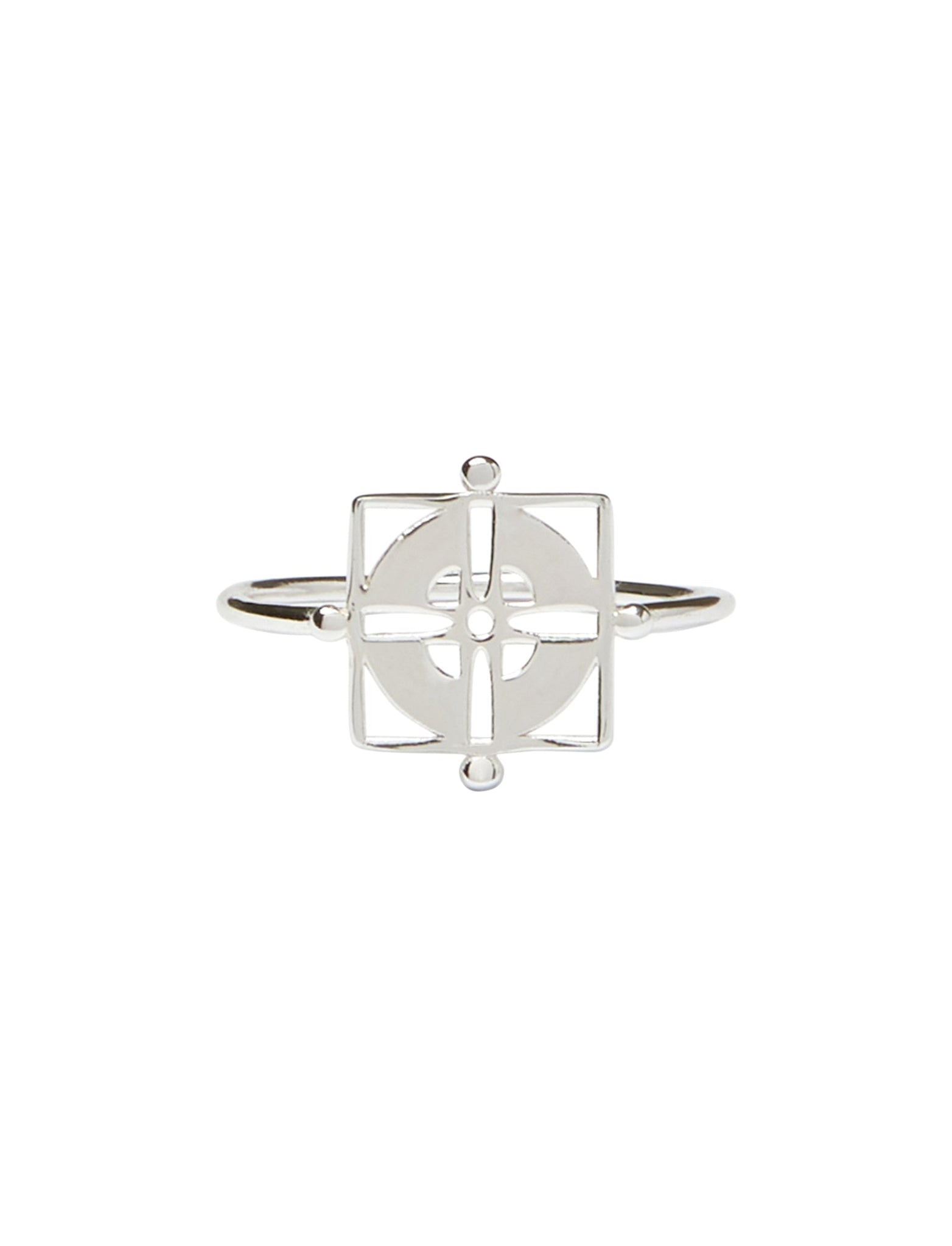 The attention to detail in the symmetrical square shape, complemented by ornate ball details on the edge, captures light in captivating ways, making this ring an ideal accessory from sunrise to sunset Whether paired with a party dress, a corporate outfit, or a casual ensemble, the Willow Ring adds an extra layer of style, making it a timeless addition to any jewellery collection..