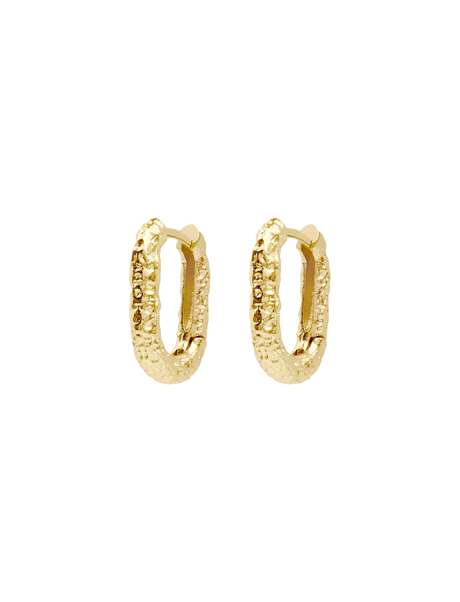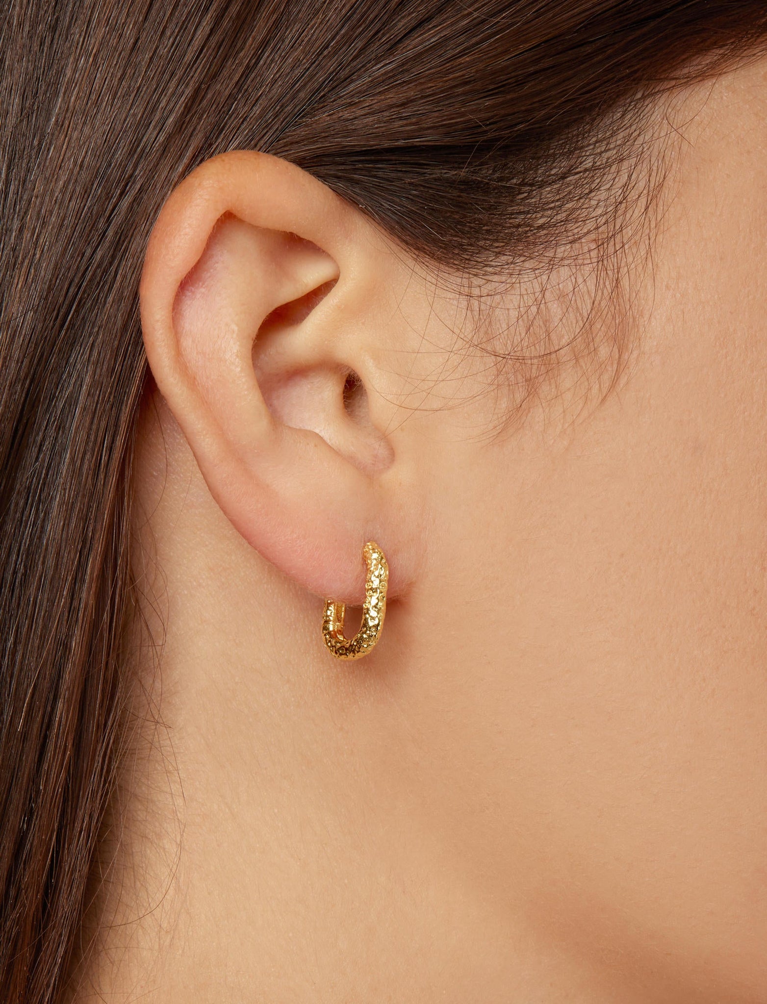 A delicate blend of sterling silver and yellow gold plating, these hoops captivate with their vintage amber shine that beautifully captures light The textured surface enhances versatility, adding a special charm whether worn for everyday elegance or special occasions.